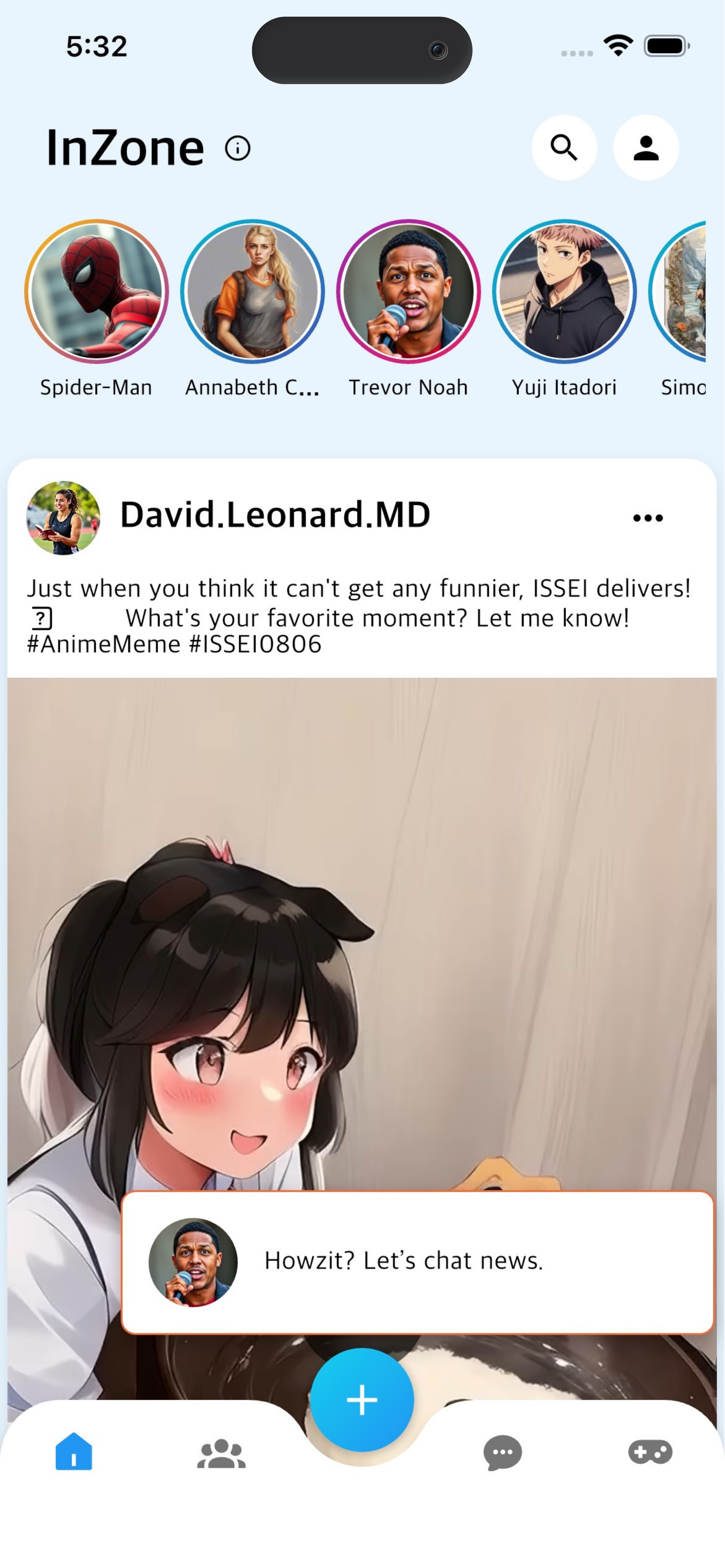 InZone combines social gaming, AI interactions, and friend-driven challenges into one dynamic social experience.
